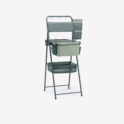 Diese Spüle mit Stauraum und Ablage zum Trocknen eignet sich für Körperpflege, Geschirrspülen und Wäschewaschen beim Camping.