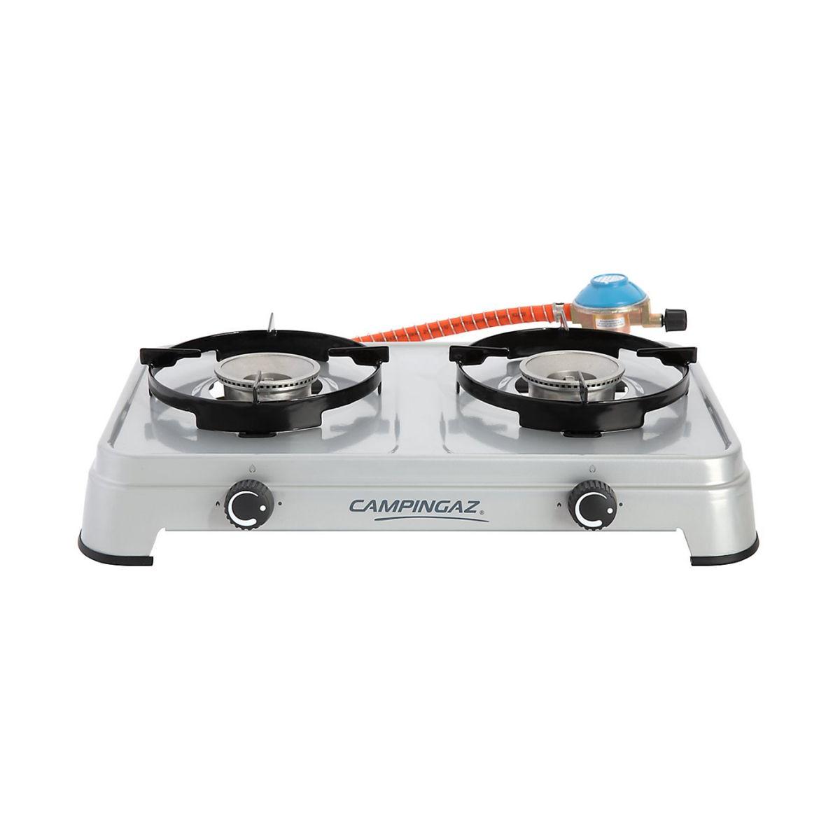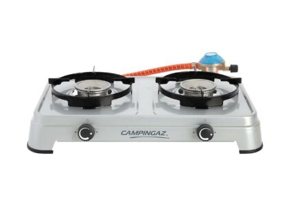 Der Camping Cook aus dem Hause Campingaz ist ein tolles Einsteigermodell für jeden Camper. Der robuste Kocher bietet eine exzellente Leistung und Portabilität. Da Schlauch und Regler bereits fest montiert sind, entfällt ein lästiges und umständliches Aufbauen. Man muss lediglich die Easy-Click® Kartusche anschließen und schon kann es losgehen. Die beiden voneinander unabhängigen, regulierbaren 1800 W Brenner bieten eine starke Leistung, sodass niemand lange auf sein Essen warten muss. Die breite Basis…