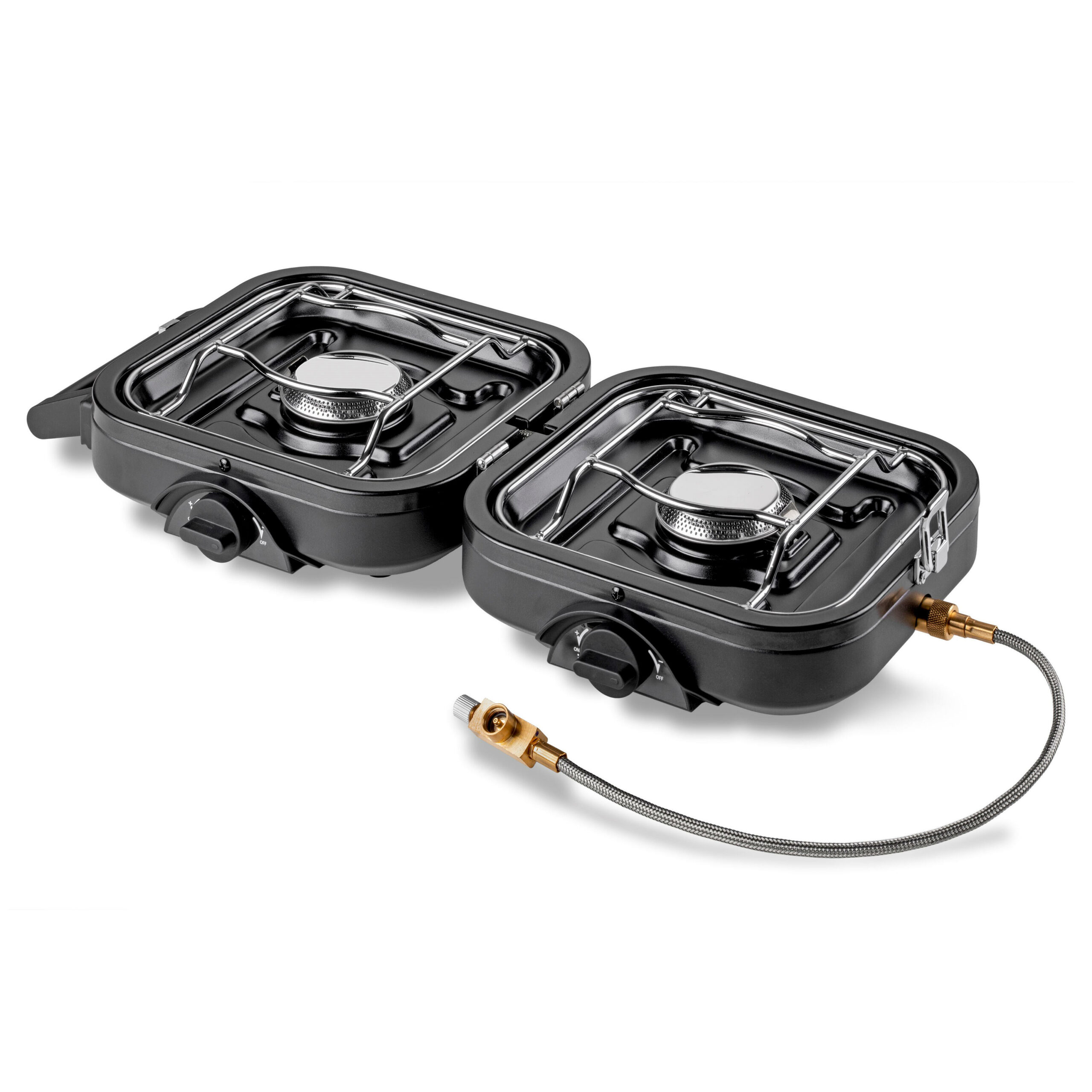 Bedienfreundlicher 2-flammiger Kocher, kompakt, zusammenklappbar und tragbar, ideal beim Wandern/Camping.