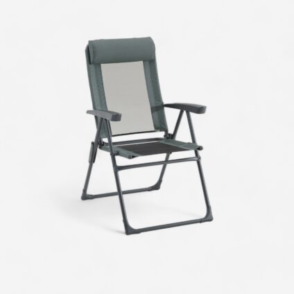 Dieser Campingstuhl mit Kopfstütze und Armlehnen ist perfekt, um bequem am Tisch zu sitzen oder einfach nur zu entspannen.