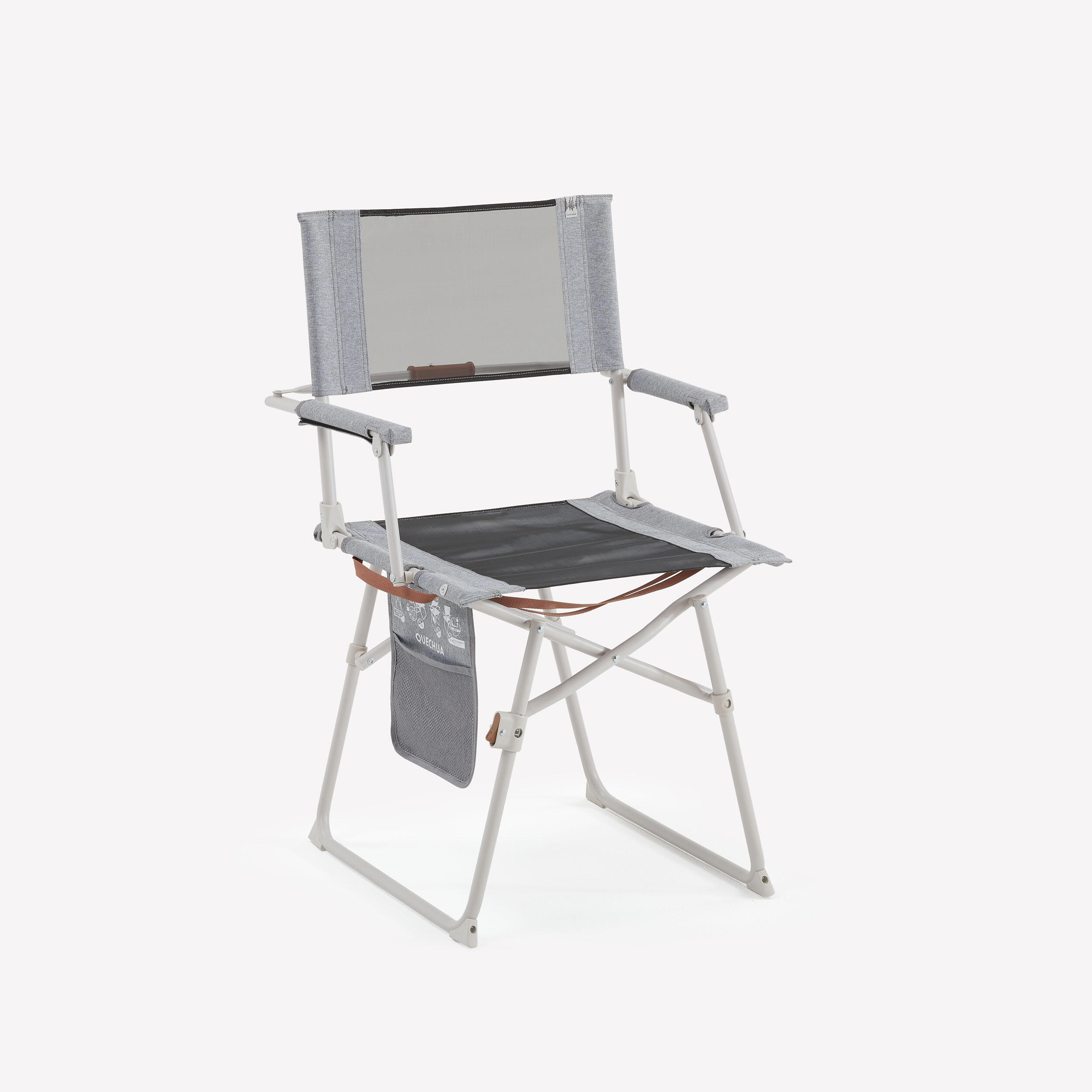 Bequemer Stuhl mit 2 Armlehnen, der sich leicht aufklappen lässt, ideal um beim Camping bequem am Tisch zu sitzen.
