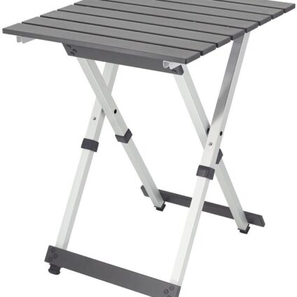 Leicht, stabil und dabei so kompakt zusammenklappbar, dass dieser kleine Camping- oder Beistelltisch auf jeden Campingtrip mitkommen kann. Dank der Teleskop-Tischbeine lässt sich der kompakte Tisch durch einfaches Zusammendrücken der Drucktasten an den Tischbeinen auf ein unglaublich kleines Packmaß zusammenklappen. So nimmt er bei Transport und Lagerung nur wenig Platz weg. Tragegriffe machen es zudem besonders leicht, den Tisch zu transportieren. Der Campingtisch eignet sich hervorragend als…