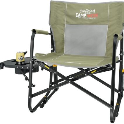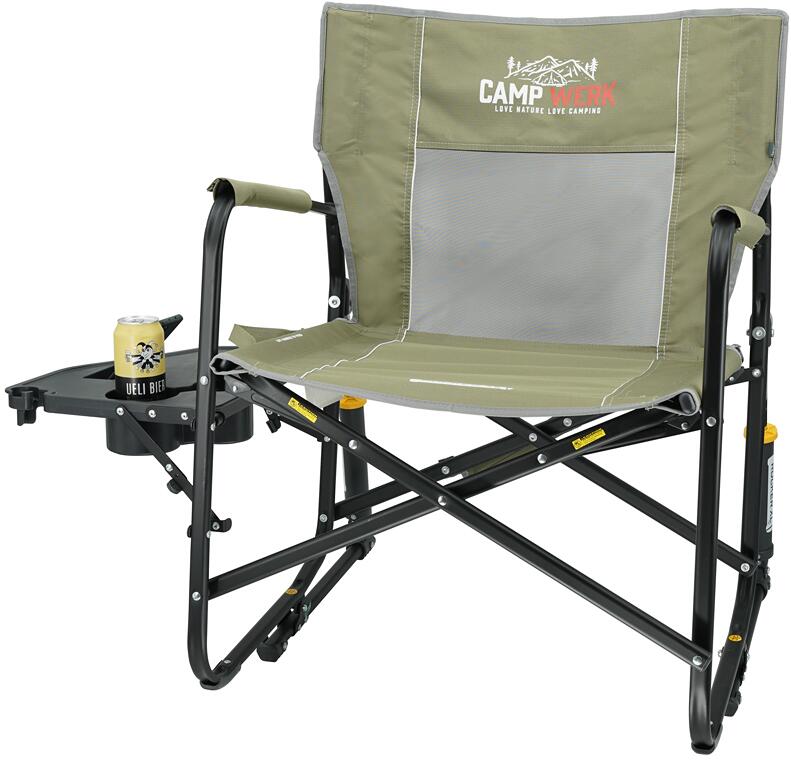 Extrabreiter Outdoor Schaukelstuhl mit integriertem Tisch und einer Tragkraft von 200 kg für deine Relax-Momente im nächsten Camping-Urlaub! Mit dem Schaukel-Campingstuhl wiegst du dich mitten im Grünen in entspannte Urlaubsträume. Möglich macht das die integrierten Stoßdämpfer mit Gasfeder-Schaukel-Technologie. Und weil sich der Campingstuhl ganz einfach flach zusammenklappen lässt, begleitet er dich ab sofort auf jeden Camping-Trip. Ein Tragegriff erleichtert dir zudem das Tragen.Für das gewisse Extra…