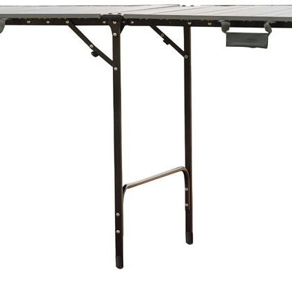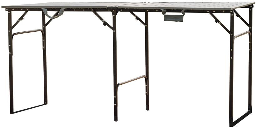 Zusammengeklappt ist dieser Campingtisch überraschend flach, kompakt und leicht zu tragen. Ausgeklappt beweist er dann aber seine wahre Größe! Mit einer Länge von mehr als 1,50 Metern passen sechs Personen locker an den Tisch. Trotzdem wiegt der XL Campingtisch so wenig, dass du ihn an seinen integrierten Tragegriffen leicht tragen kannst. Brauchst du einmal nicht so viel Platz am Tisch, lässt sich eine Hälfte des Tisches wieder einklappen. Heiße Töpfe oder Pfannen können auf der hitzeresistenten…
