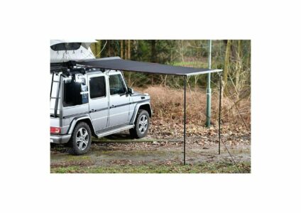 Campwerk Shadow Sackmarkise, 1,4 x 2,3 m Mit der Markise für dein Auto schaffst du dir an heißen Tagen einen kühlen Schattenplatz und wenn es regnet, einen trockenen Unterstand, unter dem der Regen nicht mehr ist als ein leises Geräusch auf dem Markisendach. Die Markise wird am Fahrzeug (Dachträger/Reling) montiert und lässt sich leicht ein- und ausrollen. Wird sie nicht gebraucht, kanns sie in der wasserdichten und schmutzabweisenden Schutzhülle verstaut werden, welche sich mit einem Reißverschluss…