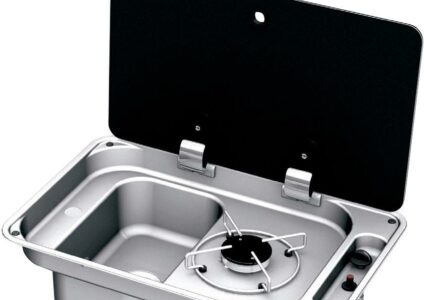 1-flammige Kocher-Spüle-Kombination mit rechteckigem Becken. Ausschnitt an der Spüle für Wasserhahn (Hahn nicht im Lieferumfang). Die „Smoke“-Glasabdeckung kann auf beiden Seiten angebracht werden. Dadurch mit Spüle rechts oder links zu verwenden. perfekt für kleinere Küchen mit Antikratz-Glasabdeckung Piezo-Zündung Spüle links Technische Daten: Maße: B530 x T340x H150 Einbauabmessungen: 515 x 325 mm Spüle: Ø 230 x H120 mm Leistung: 1,9 kW Gasanschluss: 30 mbar Gasverbrauch: 127 g/h Gewicht: 4,5…
