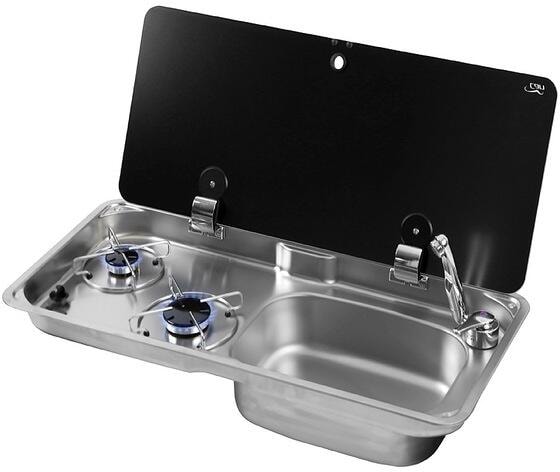 Can Koch- / Spülkombination 2-flammig, Spüle rechts, Glas 1-tlg.