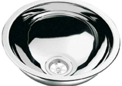 Halbkugelförmige Spüle aus Edelstahl. Ohne Ablauf Technische Daten: Abmessungen: Ø 290 x H 120 mm Ausschnitt-Abmessungen: Ø 270 x H 120 mm Gewicht: 0,6 kg Material: Edelstahl Lieferumfang: 1x Einbauspüle