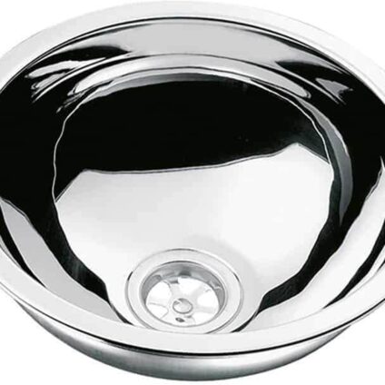 Runde Einbauspüle aus hochglanzpoliertem Edelstahl. Technische Daten: Maße: Ø 330 x 150 mm Einbaumaße: Ø 310 x 150 mm Material: Edelstahl Gewicht: 800 g