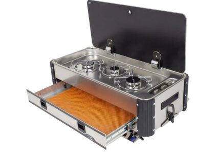 Slideout Gaskocher, 3-flammig. Kurze Seite ausziehbar. Technische Daten: Maße (BxHxT): 839 x 250 x 374 mm