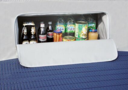 Zusätzlicher Stauraum unter dem Wohnwagen durch fest und wasserdicht mit der Bodenschürze verschweißte Aufbewahrungstaschen. Ein Doppelreißverschluss ermöglicht bequemen Zugang. In jeder Tasche ist ein Insektenschutzgewebe eingeschweißt, um Kondenswasserbildung zu vermeiden. Nutzen Sie die Tasche des Caravan-Kellers unter Ihrem Fahrzeug alskühlen und hygienischen Aufbewahrungsplatz für Lebensmittel, Getränke, Kinderspielzeug oder andere Dinge wie Schuhe und Stiefel. Da der textile Einzugskeder…