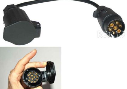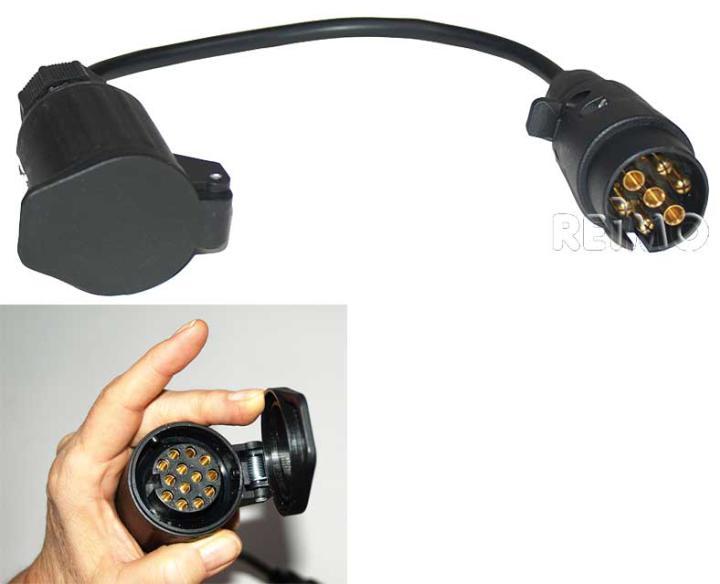 Praktisches kurzes Verlängerungskabel für die Anhängerelektrik Adapterkabel von 7-poliger Dose zu 13-poligem Stecker. Kabel 30cm lang. Lieferumfang:1 Adapterkabel
