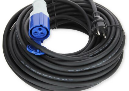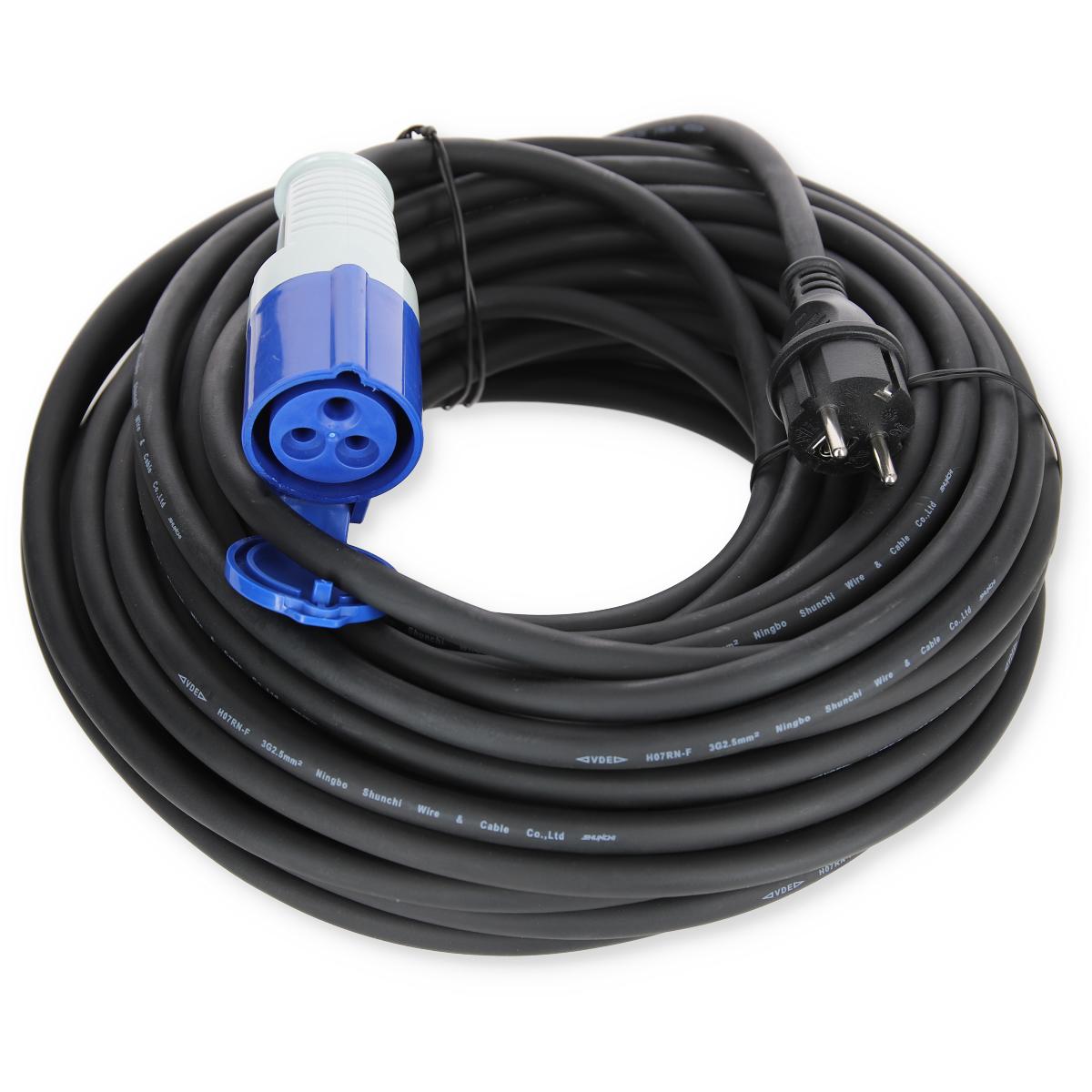 Kabel: 3 x 2,5mm sicheres H07 RN-F Kabel CEE-Adapterkabel: Schuko-Stecker auf /CEE-Kupplung mit 25m langem Adapterkabel. Das sichere H07 RNF Kabel ist 3 adrig und mit seinem Kabelquerschnitt von 2,5 mm² auf europäischen Campingplätzen zugelassen.