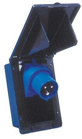 CEE-Eingangsteckdose mit Dichtung und Klappdeckel Technische Daten: Material: Kunststoff Maße: 70 x 135 x 65 mm Farbe: Schwarz