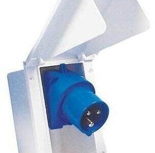 CEE-Eingangsteckdose mit Dichtung und Klappdeckel Technische Daten: Material: Kunststoff Maße: 70 x 135 x 65 mm Farbe: Weiß