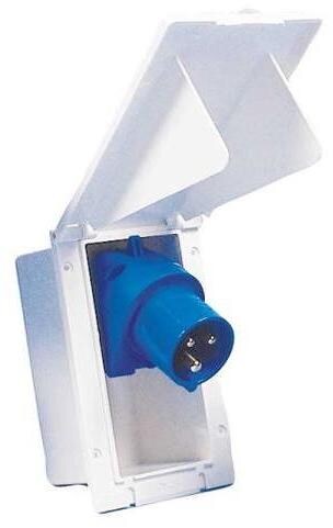 CEE-Eingangsteckdose mit Dichtung und Klappdeckel Technische Daten: Material: Kunststoff Maße: 70 x 135 x 65 mm Farbe: Weiß