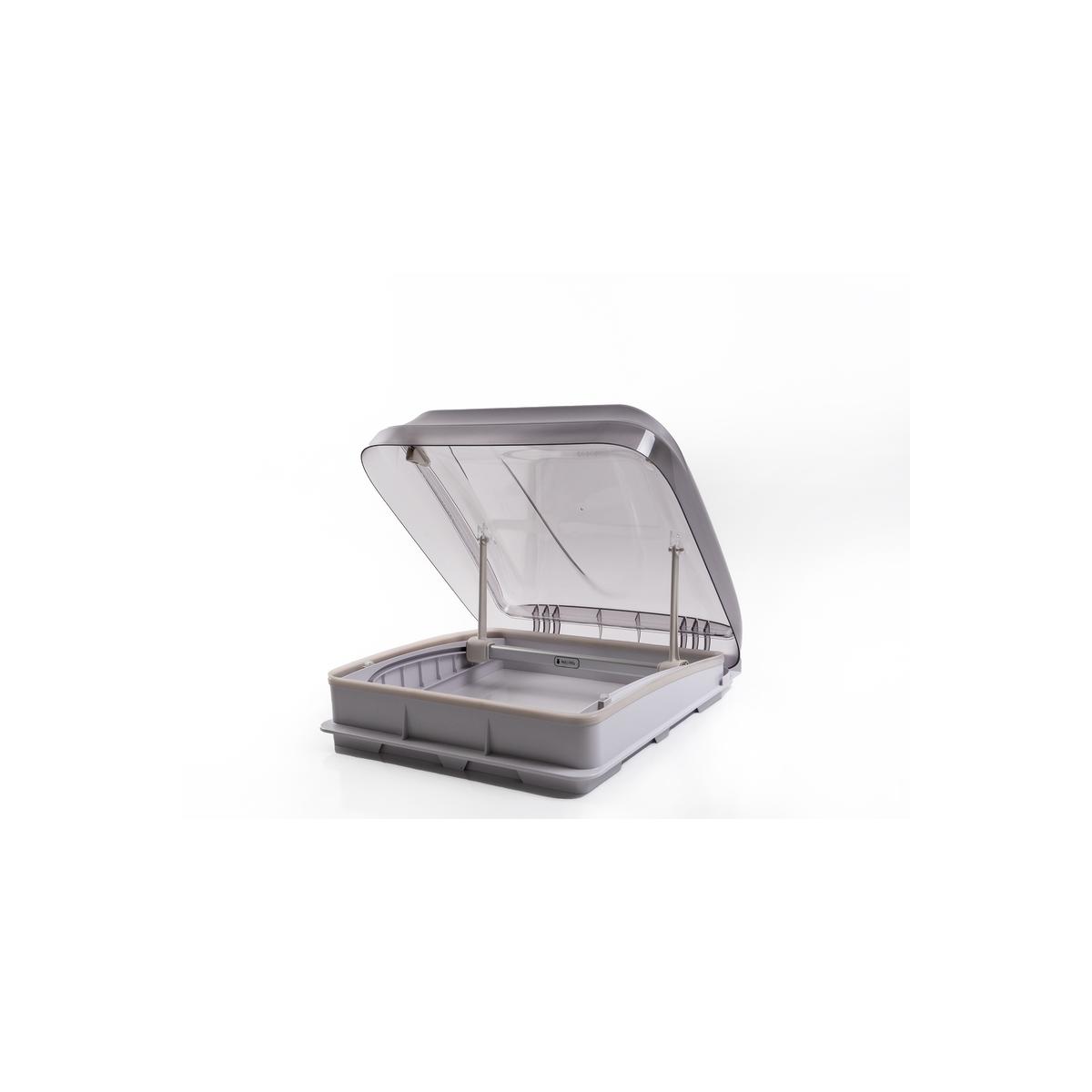 Dachhauben mit grau getönter Verglasung, Plisseeverdunkelung und Moskitoschutz UV-beständige, getönte Acrylglashaube Innenrahmen mit Plisseeverdunkelung, Moskitoschutz und Magnetverschluss 2 Aufsteller für sicheres Öffnen Ohne Zwangsbelüftung Einbaufertig: Wird auf das Fahrzeugdach aufgeklebt und von innen verschraubt Technische Daten: Ausführung: mit LED Ausschnittsmaße: 40×40 cm Gesamtmaß: 53×49 cm Gesamtmaß Innenrahmen: ca. 54×52 cm Öffnungswinkel bis 50° Aufbauhöhe: ca. 12 cm Dachstärke: 28 – 50 mm…