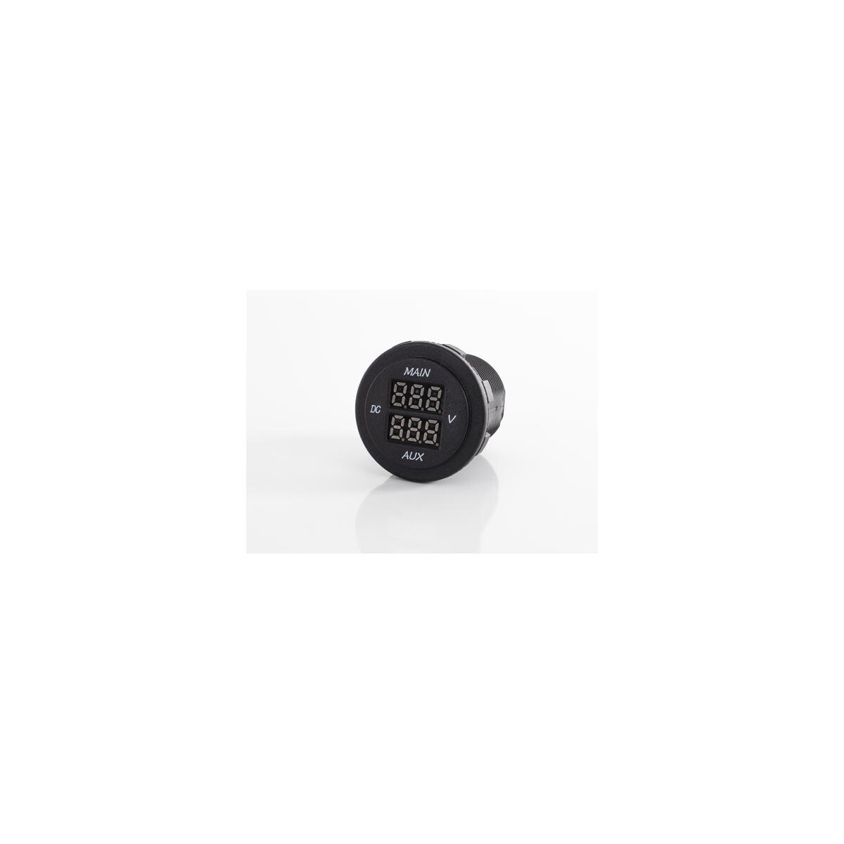 Dual LED Voltmeter (MAIN / AUX, 10 – 60 V) zur Anzeige der anliegenden Spannung in Volt. Ideal zur Überwachung der Fahrzeug- und Zusatzbatterie. 3-stellige Digitalanzeige Dual LED Voltmeter geeignet für die Überwachung von Fahrzeug- und Bordbatterie Technische Daten: Spannungsbereich: 10 – 60 V Lochdurchmesser Bohrung: Ø 29 mm Farbe: schwarz Lieferumfang: 1 Dual Voltmeter 3 vollisolierte Flachsteckhülsen