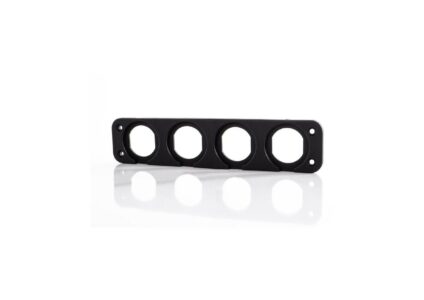 Einbau-Frontplatte 4-fach für die Aufnahme von 4 Steckdosen. Individuell konfigurierbar mit allen Carbest Powersteckdosen / USB-Steckdosen / Voltmetern. Technische Daten: Lochdurchmesser: Ø 29 mm Abmessungen (LxBxH): 195 x 42,5 x 5,5 mm Farbe: schwarz Lieferumfang: 1 Montagerahmen 4 Befestigungsschrauben