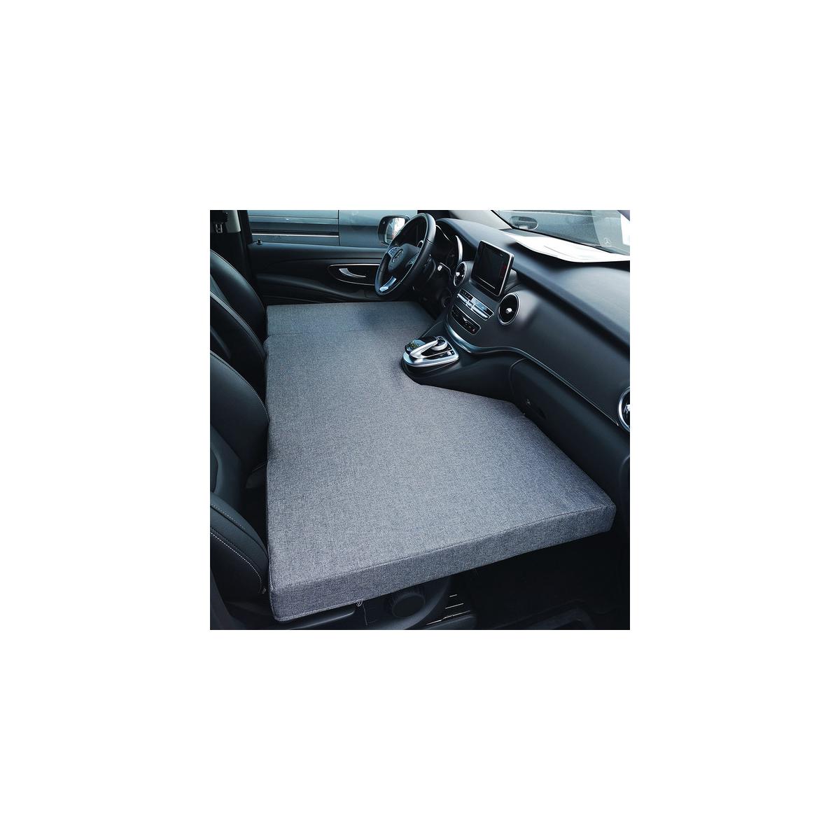 Das Zusatzbett ist in wenigen Schritten montiert: im Fahrerhaus ausklappen, in Position schieben, die Vordersitze bis zum Anschlag nach vorne justieren, den Beifahrergurt um die Vorderseite des Bettes schlingen und befestigen für zusätzlichen Widerstand. Eine 8 cm hohe Faltmatratze für das Fahrerhaus, bestehend aus 7 cm Kaltschaum (Dichte 25 kg / m3) und 1 cm MDF Platte mit abnehmbarem und waschbarem grauen Bezug aus 100% Polyestergewebe. 8 cm hoch Bezug abnehmbar und waschbar 2-fach klappbar Technische…