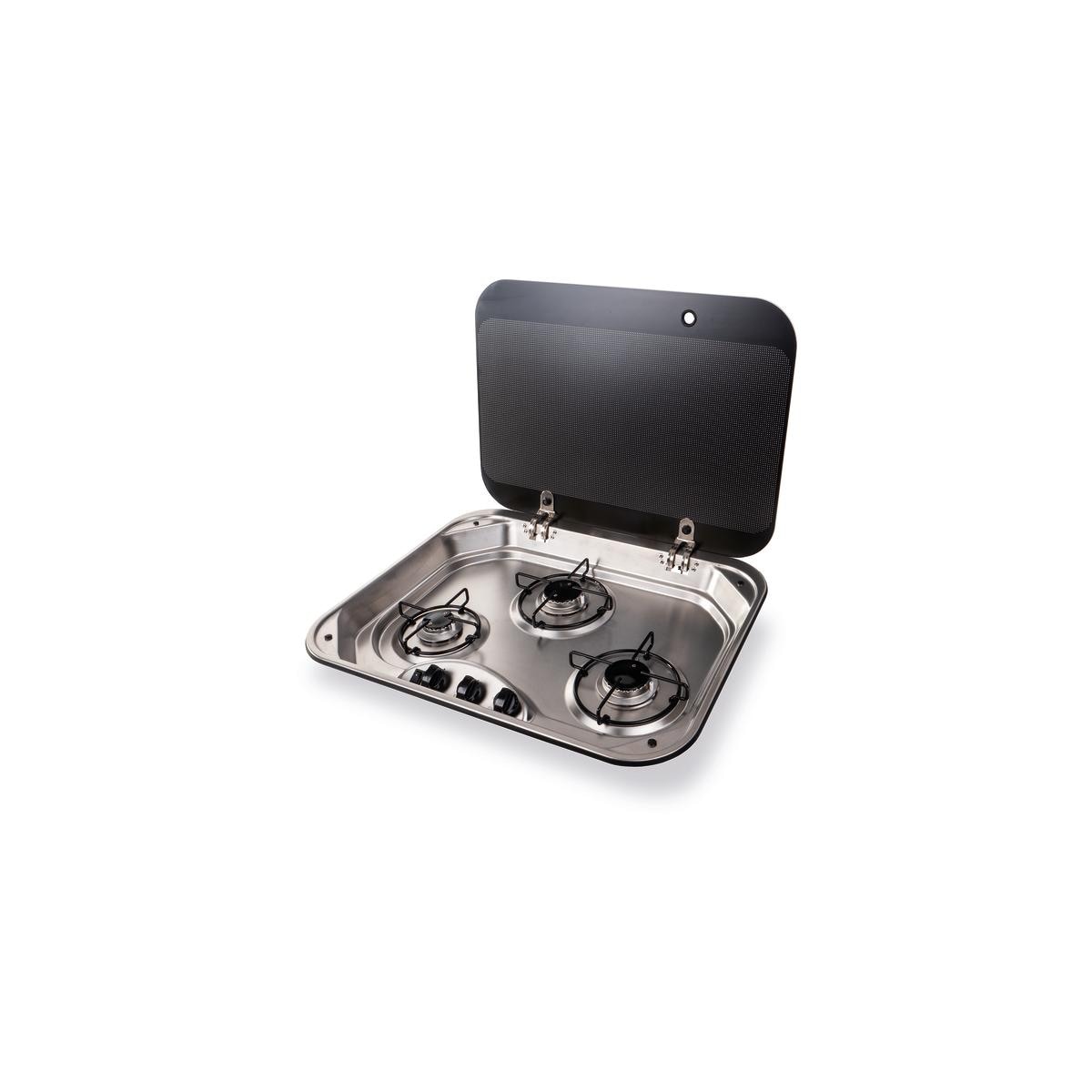 Der Carbest Kocher wird aus hochwertigem Edelstahl gefertig und ist pflegeleicht. Der 3-flammige Kocher zeichnet sich besonders durch seine drei Gasbrenner mit jeweils 2 x 1,8 kW und 1 x 1,0 kW aus, die unabhängig voneinander betrieben werden können. Alle drei Gasbrenner sind mit einer Zündsicherung ausgestattet. Durch die eingelassenen Bedienelemente kann die Glasabdeckung bei Nichtgebrauch vollständig geschlossen werden. 3-flammig mit Zündsicherung Eingelassene Bedienelemente mit Glasabdeckung aus…