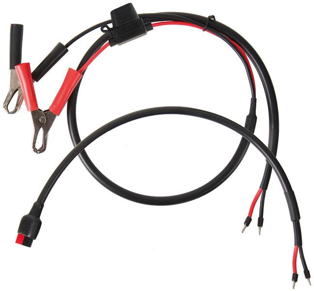 Produktmerkmale: Kabel 1: Batterieklemmen mit Sicherung / offenes Kabelende. Kabellänge: 1m, (2x 2,5 mm²). Kabel 2: Anderson Mini / offenes Kabelende. Kabellänge: 40 cm, (2x 2,5 mm²). Technische Daten: Länge: 1 m Länge: 400 mm Durchmesser: Ø 2.5 mm Farbe: schwarz Lieferumfang: 2 Kabel