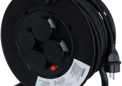 Robustes Fußgestell aus Metall 4x Schuko-Steckdosen mit Deckel Thermoschutzschalter als Überhitzungsschutz 25m Kabel 3×1,5mm²