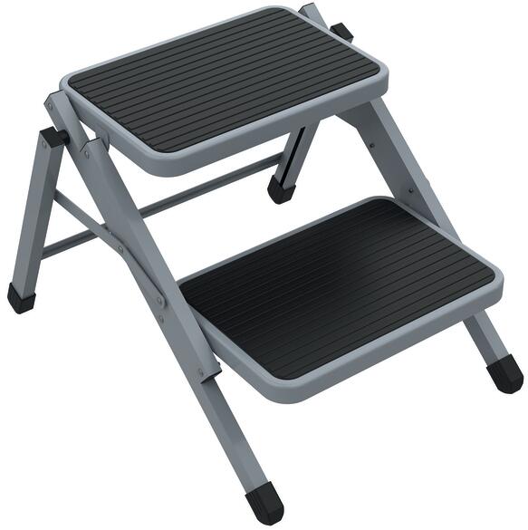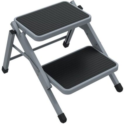 Klappbare Doppeltrittstufe, aus Stahl mit Antirutschbeschichtung. Abmessungen ausgeklappt: B500 x H400 x T590mm. Stufenhöhe 200mm / 400mm. Technische Daten: Länge: 40 cm Breite: 50 cm Höhe: 59 cm Länge geschlossen: 82 cm Breite geschlossen: 50 cm Höhe geschlossen: 7 cm Gewicht: 5.0 kg Material: Stahl Belastbarkeit: 150 kg