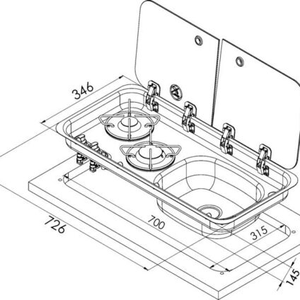 Entdecken Sie die vielseitige Kocher-Spülen-Kombination, ideal für den Einsatz beim Camping. Diese 2-flammige Einheit ist mit einer praktischen Glasabdeckung ausgestattet, die bei geschlossenem Zustand für eine sichere Gasabschaltung sorgt. Perfekt für die Zubereitung von Speisen und das Abwaschen von Geschirr, vereint diese Kombination Komfort und Sicherheit für Ihre Campingküche.2-flammiges Kochfeld mit ZündsicherungAusgestattet mit Piezo-ZündungAutomatische Gasabschaltung bei geschlossener…
