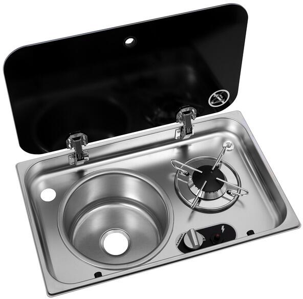 Carbest Kocher-Spülen Kombination mit Glasabdeckung, 1-flammig, links