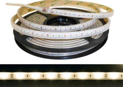 12V LED-Band, 2,4W/m, 3000K, 30LEDs/m, 5 Meter Stimmungsvolle Beleuchtung für Innen und Außen Angenehme, helle warmweiße Lichtfarbe Selbstklebend und nach jeder 3.LED kürzbar Technishe Details: 12V LED-Flexband Topview: 30 LED´s/m, 2,4W/m 187 Lumen/m 3.000K, IP66 Energieeffizienzklasse: G Produktmaß:Bandbreite: 8 mm Dimmbar: Ja (durch Einsatz eines externen Dimmers – Art. Nr. 23778) Lieferumfang: 5 Meter LED-Flexband
