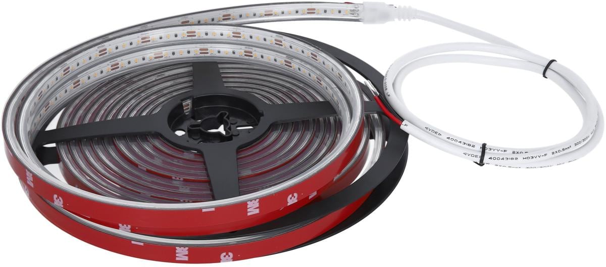 Profi LED-Flexbänder mit warmweißem Licht für den Innen- & Außenbereich Stimmungsvolle Beleuchtung für Innen Angenehme, helle warmweiße Lichtfarbe Selbstklebend und nach jeder 3.LED kürzbar ideal als Markisenbeleuchtung,inkl. 1 m Anschlusskabel (wasserdicht), Technische Daten: Energieeffizienzklasse: G Leuchtmittel: 120 LED',s Nennleistung: 9,6 W/m Helligkeit/Lichtstrom: 780 Lumen Abstrahlwinkel: 120° Leuchtfarbe: Warmweiß Lichtfarbe: 3000K Lebensdauer: 30.000 h Anzahl Schaltzyklen: 100.000 IP67…