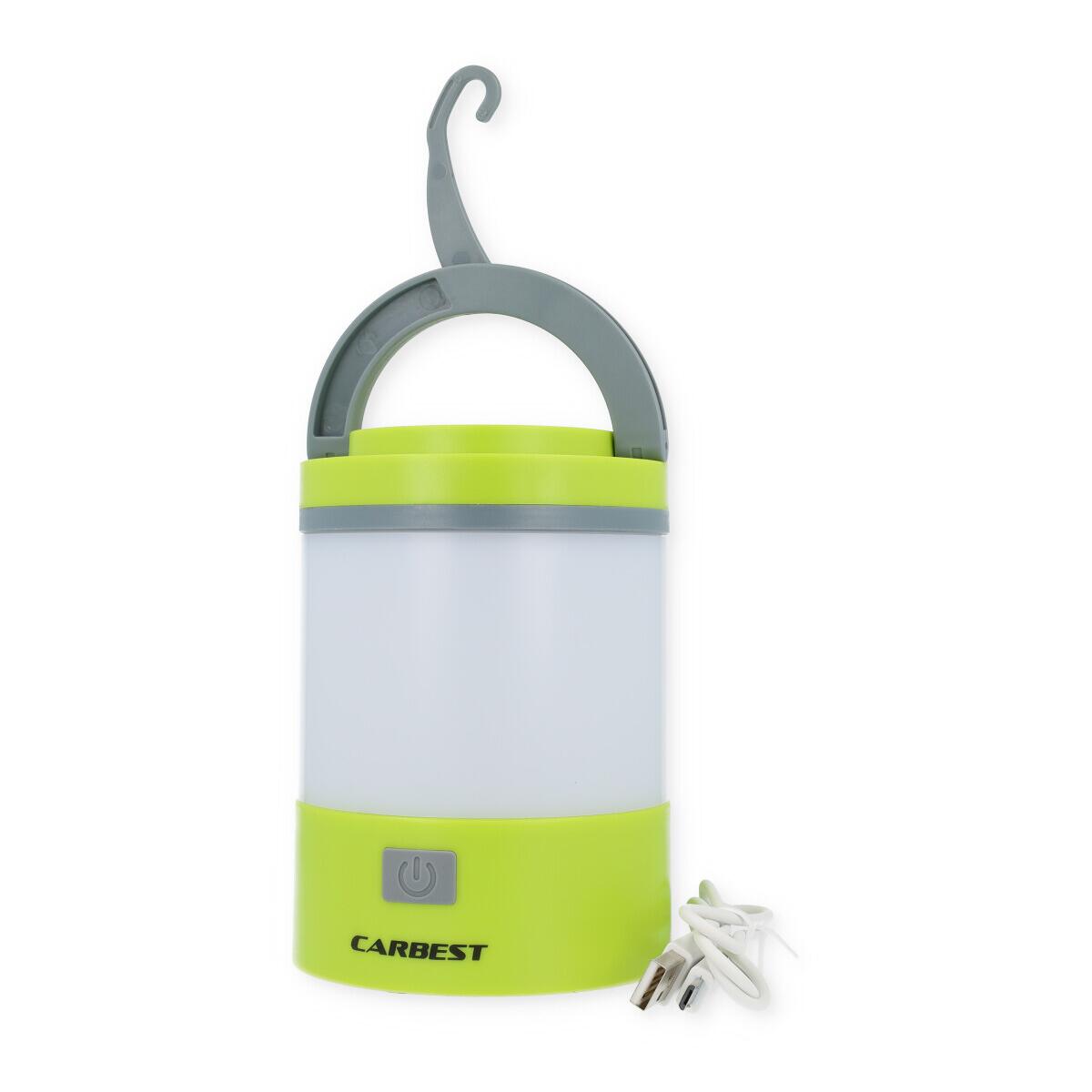 Große Leuchte mit Moskitoschutz, USB-Anschluss und Power-Bank-Funktion. Alle Leuchten zum Aufhängen oder Hinstellen in Zelten. Kaltweißes Licht Mit 4 Beleuchtungsstufen: 100% Licht (Lumen mehr als 150 Lm) 50% Licht (Lumen mehr als 70 Lm) Signalblinken Aus Technische Daten: Akku: 2000 mAh Leistung: 3,7 W 16 SMD-LEDs Maße: Ø 98 x 138 mm Gewicht: 389 g Lichtfarbe: kaltweiß