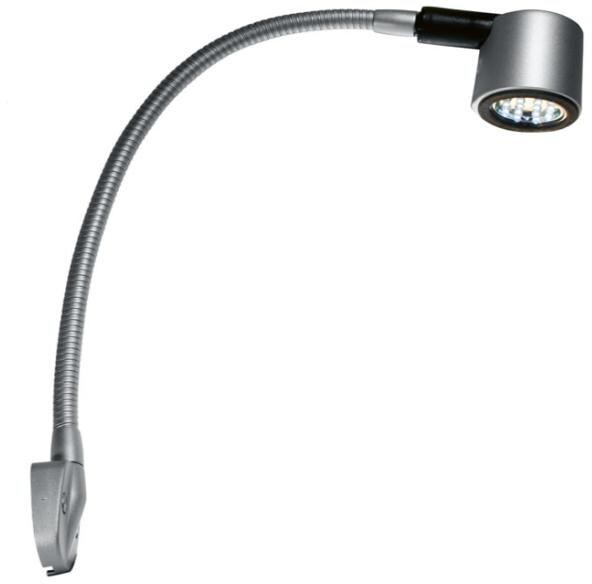 Mattsilberne Schwanenhalsleuchte mit 1 Watt LED, Leuchtmittel MR11. Zur Schraubmontage. Länge 330 mm. Mit Ein-/Aus-Kippschalter. 15 LEDs. Technische Daten: Energieeffizienzklasse: A+ Stromverbrauch, bei 1000h Betrieb: 1kWh/1000h Nennleistung: 1 W Helligkeit / Lichtstrom: 84 lm Leuchtfarbe: Warmweiß Lichtfarbe: 3400 K CRI (Ra): mind. 80 Ra Lebensdauer: 25.000 h Anzahl Schaltzyklen: 30000 Aufwärmzeit (95%):