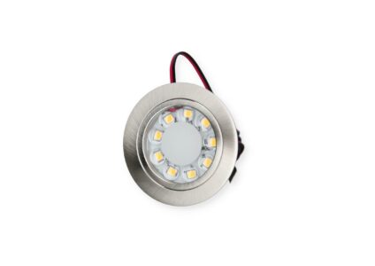 Edelstahl-LED-Spot Technische Daten: Spannung: 12 V Leistung: 1,7 W Gewichteter Energieverbrauch [kWh/1000h]: 2 Energieeffizienzklasse: F Material: gebürstetes Edelstahl Lichtfarbe: 3.000 K Lichtstrom: 110 Lumen Anzahl der LED&#39,s: 9 Ausschnittmaß: 57-60 mm Maße: ca. Ø 65 x 12 mm