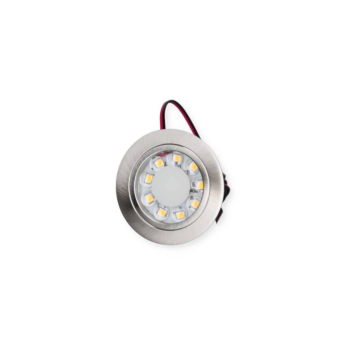 Edelstahl-LED-Spot Technische Daten: Spannung: 12 V Leistung: 1,7 W Gewichteter Energieverbrauch [kWh/1000h]: 2 Energieeffizienzklasse: F Material: gebürstetes Edelstahl Lichtfarbe: 3.000 K Lichtstrom: 110 Lumen Anzahl der LED&#39,s: 9 Ausschnittmaß: 57-60 mm Maße: ca. Ø 65 x 12 mm