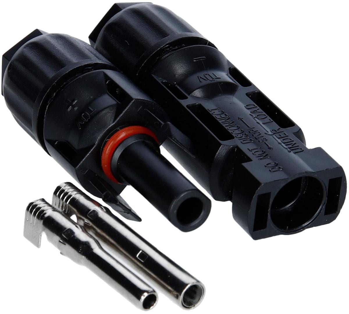 Spezialstecker-Set für einadrige Kabel 2,5 – 6 mm2. Mit Rastverriegelung. Set bestehend aus 1 x Stecker und 1 x Buchse. Technische Daten: Schutzart: ungesteckt IP2X, gesteckt IP67. Temperaturbereich -40° bis 90° C Spannung bis max. 1000 V. Strom bis max. 30 A