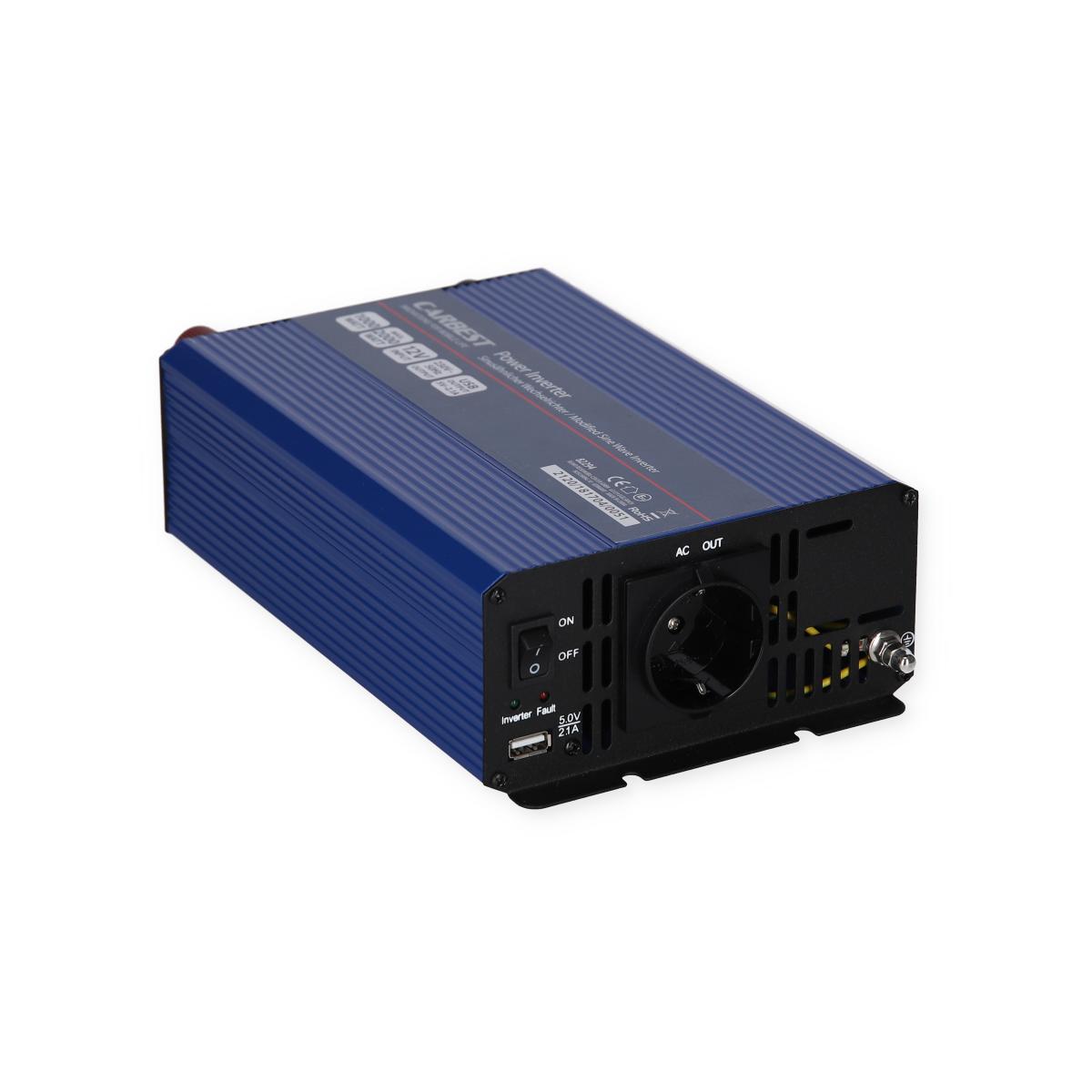 Wechselrichter mit modifzierter oder sinusähnlicher Spannung Nutzung vieler haushaltsüblicher Geräte USB-Anschluss 5 V ~ 2,1 A Batterieschutz durch Unterspannungs-/Überspannungsabschaltung Verpolungssicher, Überlastschutz Übertemperaturabschaltung (> 75° C) e-mark zertifiziert für den Einbau in Fahrzeugen (ohne 12 V Stecker für den zigarettenanschluss) Technische Daten: Eingangsspannung DC: 12 V Eingangsspannungsbereich: 10,5 V-16 V Nennleistung: 1000 W Spitzenleistung kurzzeitig (2S): 2000 W…