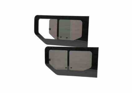 Aufschiebbare Seitenscheiben für den Trafic II Echtglasfenster für Licht & frische Luft im Lade- und Wohnraum. Mit den eleganten Schiebefenstern wird aus dem Trafic Transporter optisch ein Kombi. Die dunkelgetönten Scheiben aus Sicherheitsglas eignen sich zur nachträglichen Verglasung. Passend für Renault Trafic und die baugleichen Opel Vivaro und Nissan NV300. Der benötigte Fensterausschnitt entspricht der Prägung in der Fahrzeugwand. Nachrüstbar Robuste Sicherheitsverglasung Zum Sichtschutz verdunkelt…