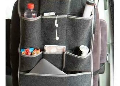 Der Filz-Sitzorganizer ist sowohl für Fahrer- als auch Beifahrersitz geeignet. Der Organizer hat zum einen zwei elastische Haltebänder zur Befestigung an den Armlehmen, zum anderen 2 Haken zur Befestigung unter dem Sitz. Somit ist der Organizer auch während der Fahrt gut fixiert. Die 7 Taschen haben unterschiedliche Größen. Die größte Tasche ist auch für Laptops geeignet. Der Organizer wird mit Klett an der Kopfstütze befestigt. Mit diesem Produkt gewinnen Sie wertvollen zusätzlichen Stauraum, der…