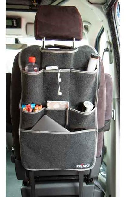 Der Filz-Sitzorganizer ist sowohl für Fahrer- als auch Beifahrersitz geeignet. Der Organizer hat zum einen zwei elastische Haltebänder zur Befestigung an den Armlehmen, zum anderen 2 Haken zur Befestigung unter dem Sitz. Somit ist der Organizer auch während der Fahrt gut fixiert. Die 7 Taschen haben unterschiedliche Größen. Die größte Tasche ist auch für Laptops geeignet. Der Organizer wird mit Klett an der Kopfstütze befestigt. Mit diesem Produkt gewinnen Sie wertvollen zusätzlichen Stauraum, der…