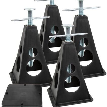 Stützbockset 4-teilig aus Kunststoff inklusive Platten UV-beständig Höhenverstellbar Langlebiges Material Stapelbar und leicht Technische Daten: Höhe: 30-42 cm Farbe: schwarz Tragkraft: 750 kg