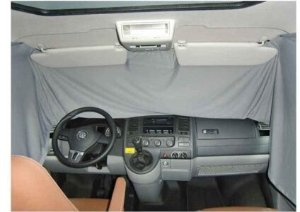 Vorhangsatz zur Fahrerhausverdunkelung Ab Baujahr 2003. 1-teilig. Diese fast vollständige blickdichte Verdunklung der Front- und Seitenscheiben gewährt einen ungestörten Rückzugsraum. Verhindert die Aufheizung des Fahrerhauses und schützt vor unerwünschter Sicht ins Fahrzeuginnere. Technische Daten: VW Caddy Maxi ab Bj. 2015 1-teilig, Grau