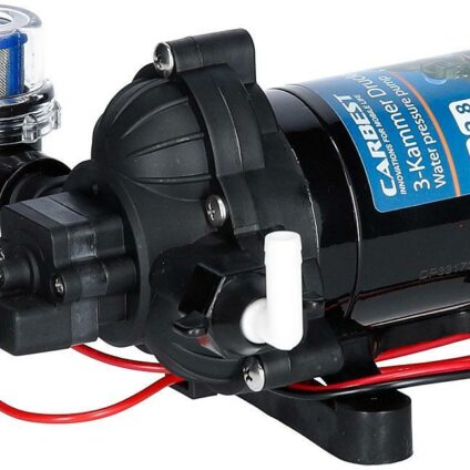 Diese 12V Druckwasserpumpe mit einem Abschaltdruck von 2,8 bar und einer Förderleistung von 10l/min verspricht dank einer robusten Bauweise 100% Funktionstüchtigkeit über eine lange Lebensdauer. einfache Installation lange Lebensdauer dank robuster Konstruktion leiser und gleichmäßiger Lauf integriertes Rückschlagventil selbstansaugend trockenlaufsicher Überhitzungsschutz Technische Daten: 12 V Abschaltdruck: 2,8 bar Förderleistung: 10 L/min 3-Kammer Membran-Pumpe 3,5 A (max. 7,5 A) mit Anschluss über…