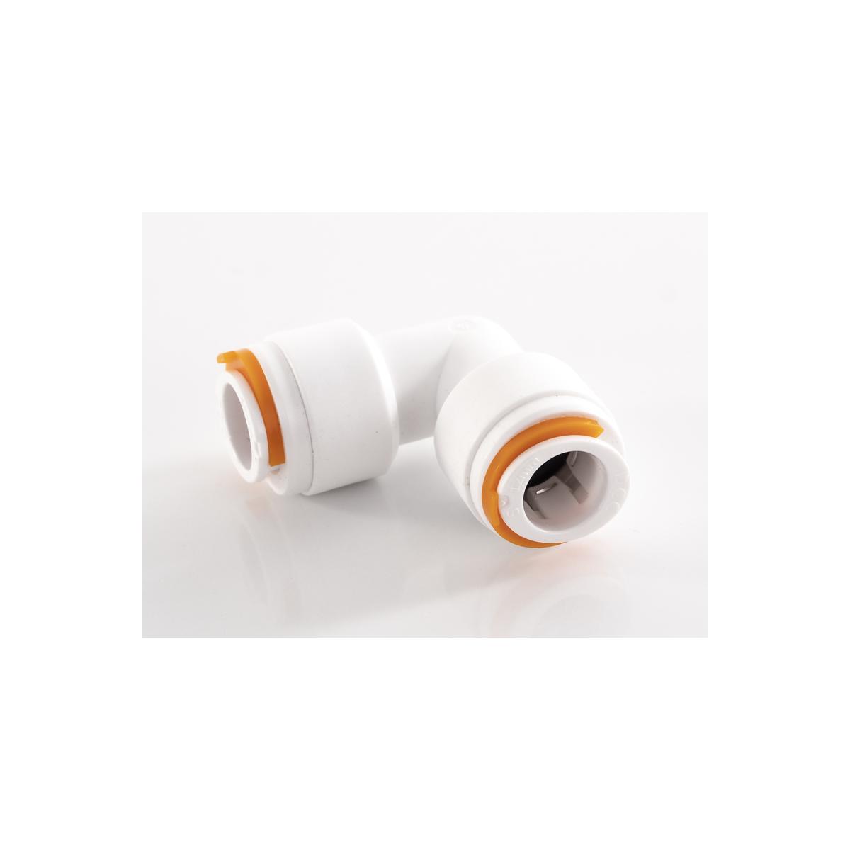 Winkelverbinder 90° mit Sicherungsclips. Verlegung ohne Kickstellen für optimalen Schutz Stecksystem für eine schnelle Montage Inkl. Sicherungsring 100% dicht bis zu einem Betriebsdruck von 12 Bar (23°C) Lebensmittelecht Kein umständliches Hantieren mit Schlauchschellen Hochwertige Verarbeitung Technische Daten: gewinkelt: 90° Durchmesser: Ø 12 mm Farbe: weiß / orange Lieferumfang: 1x Winkelverbinder