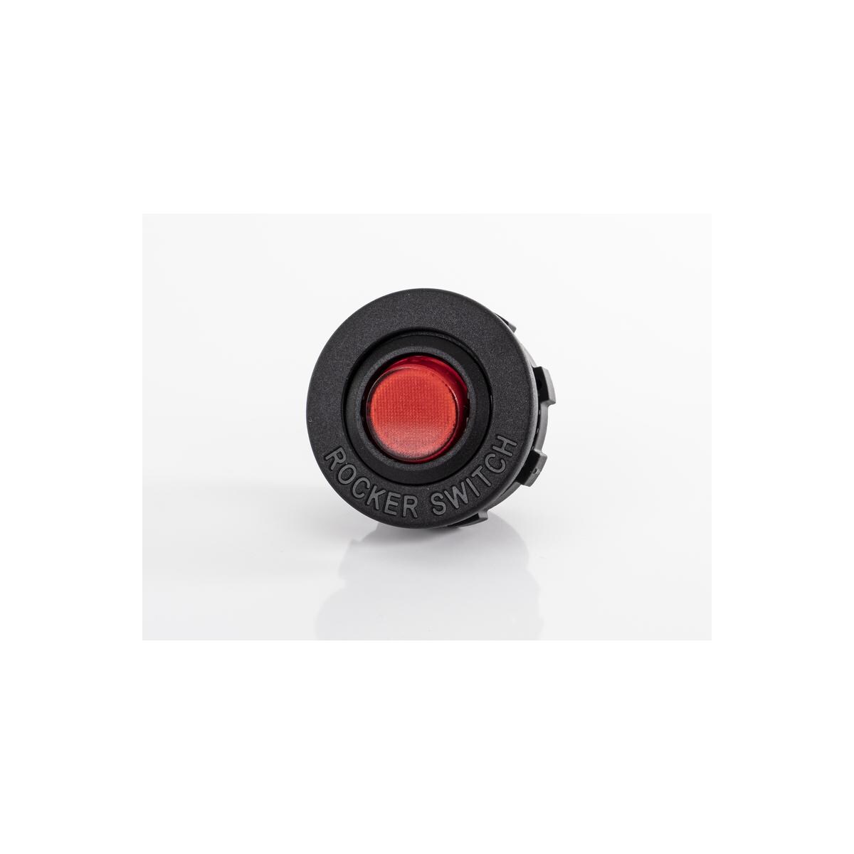 Wippschalter zum Ein- und Ausschalten mit roter Kontrollbeleuchtung. Technische Daten: Belastbarkeit: 12V – 10A / 24V – 6A Lochdurchmesser Bohrung: Ø 29 mm Farbe: schwarz / rot Lieferumfang: 1x Wippschalter 3 vollisolierte Flachsteckhülsen
