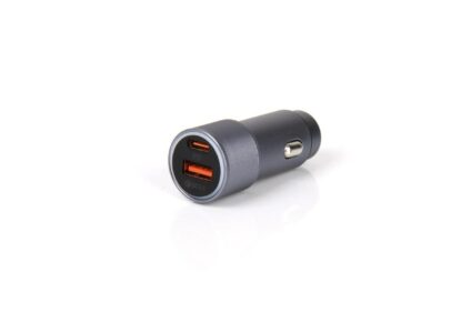 Zweifach USB-Ladestecker von Carbest. Mit Zigarettenanzünder-Stecker Hochwertiges Aluminiumgehäuse USB-A und USB-C Ausgang Blaue LED-Beleuchtung USB 3.0 und USB-C Eingang für schnelles Laden von bis zu zwei Geräten. Blaue Status-LED zeigt die Betriebsbereitschaft an. Technische Daten: Input: DC 12 / 24 V Output USB-A/QC 3.0: 5V/3A, 9V/2A, 12V/1,5A (max. 18 W) Output USB-C/PD: 5V/3A, 9V/2A, 12V/1,5A (max. 18 W) Material: Aluminium Maße: L 64,5 x Ø 26,5 mm Gewicht: 25 g Lieferumfang: 1x USB-Ladestecker