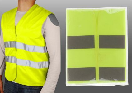 Reflektierende Sicherheitsweste. In Belgien, Spanien und Italien obligatorisch. Es ist ratsam, es immer mit auf die Reise zu nehmen.