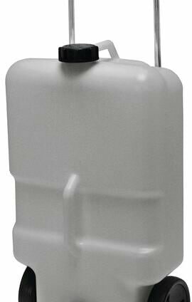 Mit 2 Schraubverschlüssen 24l Abwasserrolltank, mit 2 Schraubverschlüssen DIN61 und verstellbarem Bügelgriff, Maße mit eingschobenem Griff: L59,5xB32,5x H21,5