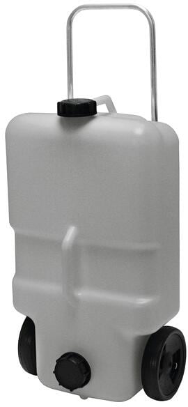 Mit 2 Schraubverschlüssen 24l Abwasserrolltank, mit 2 Schraubverschlüssen DIN61 und verstellbarem Bügelgriff, Maße mit eingschobenem Griff: L59,5xB32,5x H21,5